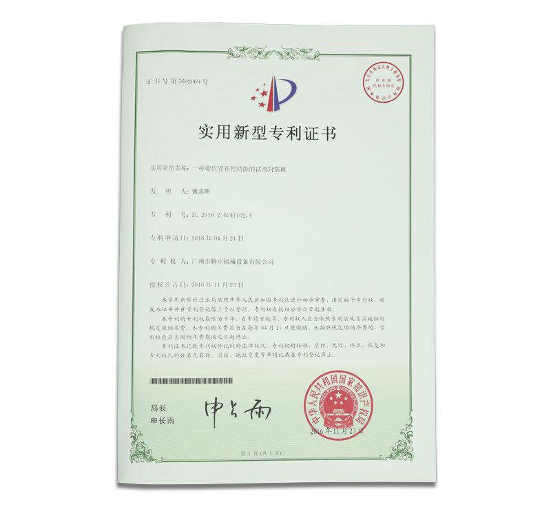 騰卓機(jī)械專(zhuān)利生產(chǎn)證書(shū),專(zhuān)業(yè)制造包裝設(shè)備的生產(chǎn)廠家,全自動(dòng)及半自動(dòng)的洗瓶機(jī),烘干機(jī),灌裝機(jī),旋蓋機(jī),貼標(biāo)機(jī),套標(biāo)機(jī),打碼機(jī)等非標(biāo)定制自動(dòng)化包裝生產(chǎn)線