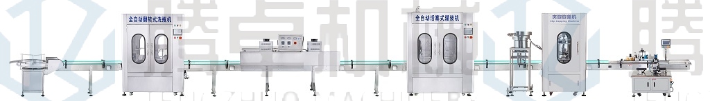 1.全自動生產(chǎn)線流程:人工把瓶放到送瓶轉盤上-自動洗瓶-自動高溫烘干殺菌-自動灌裝-人工燈檢-自動理蓋下蓋-自動旋蓋-自動打碼-自動貼標-人工收瓶