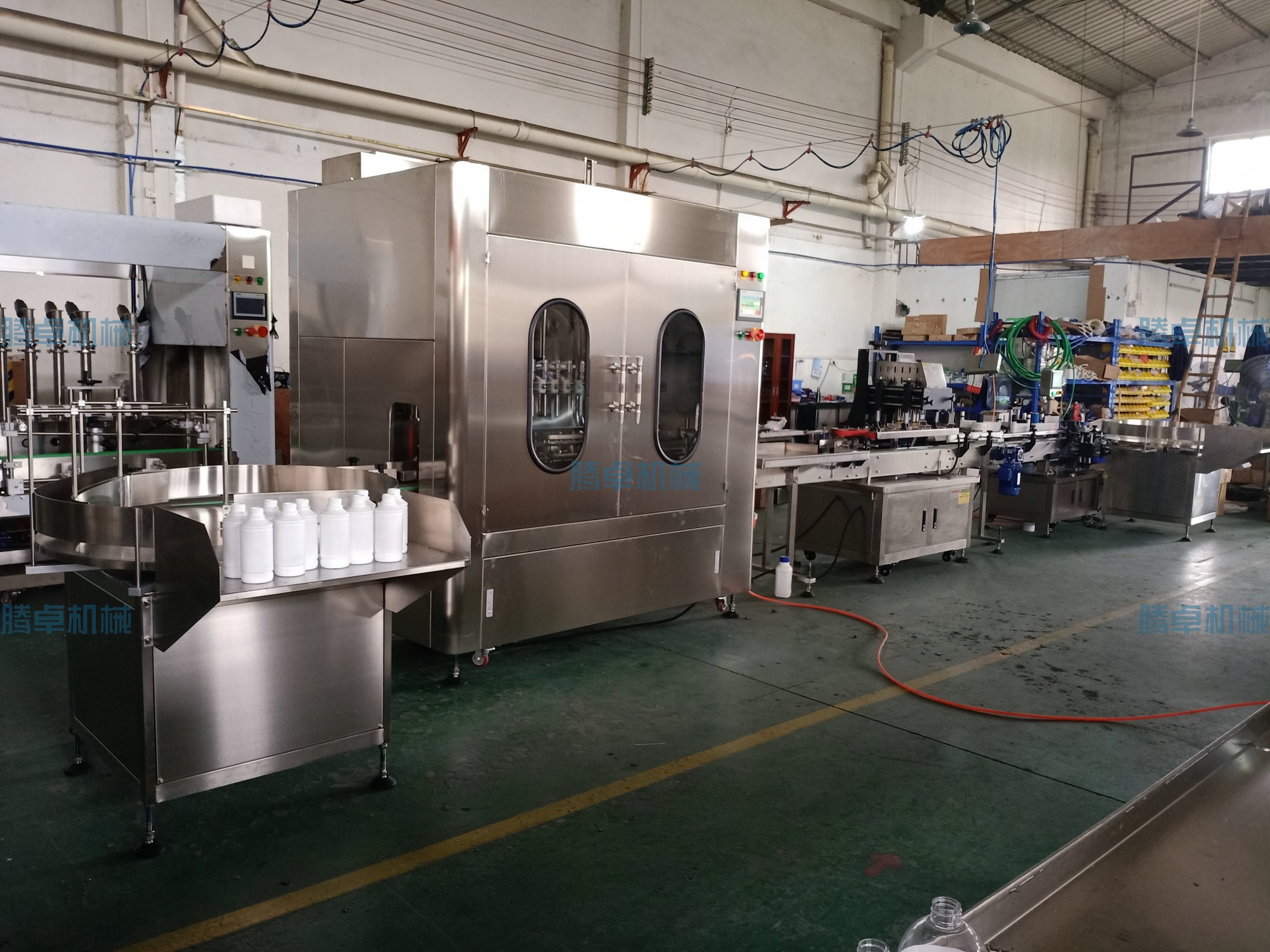 它實(shí)現(xiàn)了常壓進(jìn)液、負(fù)壓消泡的灌裝方式。灌裝到瓶子的液體是根據(jù)灌裝容量要求設(shè)定的上液位與下液位的差值,消除了液體掛壁的影響,杜絕了液位波動(dòng)產(chǎn)生的誤差,降低了對(duì)灌裝時(shí)間的敏感性。
